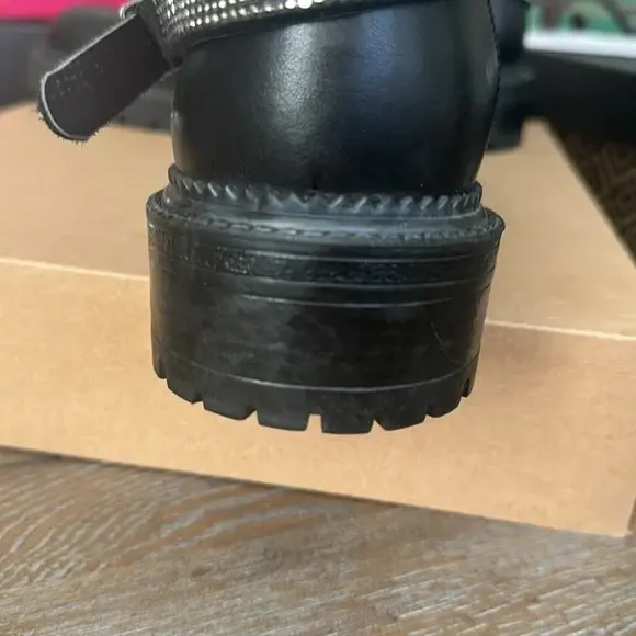Black Leather Combat Boot w/studded rhinestone belted straps