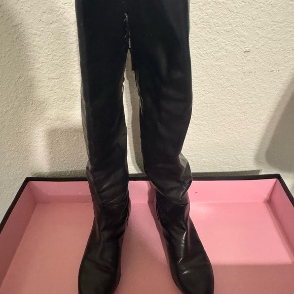 Steven by Steve Madden pre-owned great condition black genuine leather top lace-up detail low heeled wedge over the knee boots women’s size 10