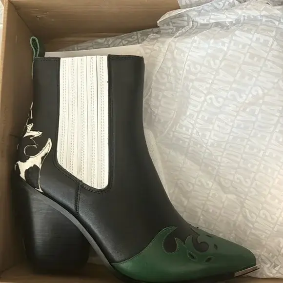Steve Madden Trim Black Multi Cowboy Ankle Booties Size 9.5