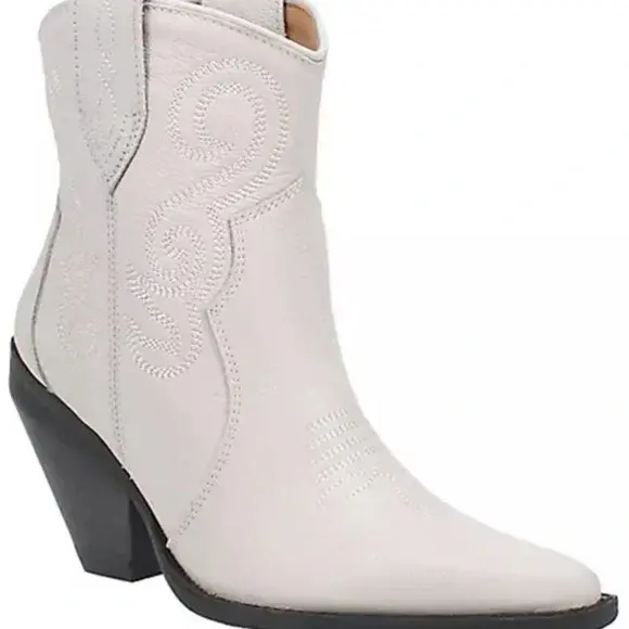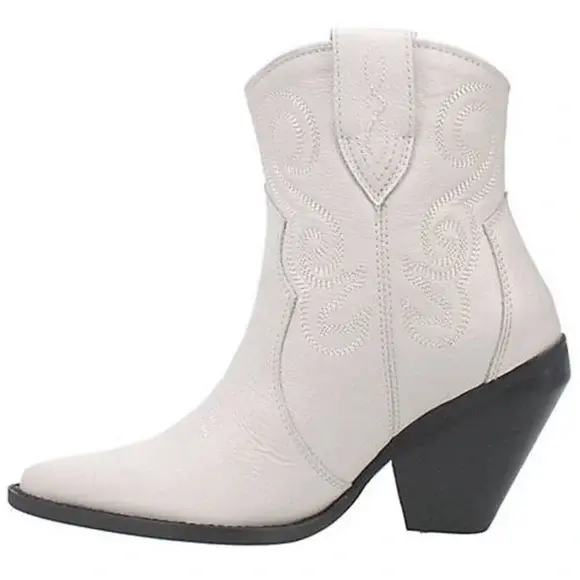 Dingo White Leather Western Cowboy Ankle Boots - Dingo White Leather Western Cowboy Ankle Boots